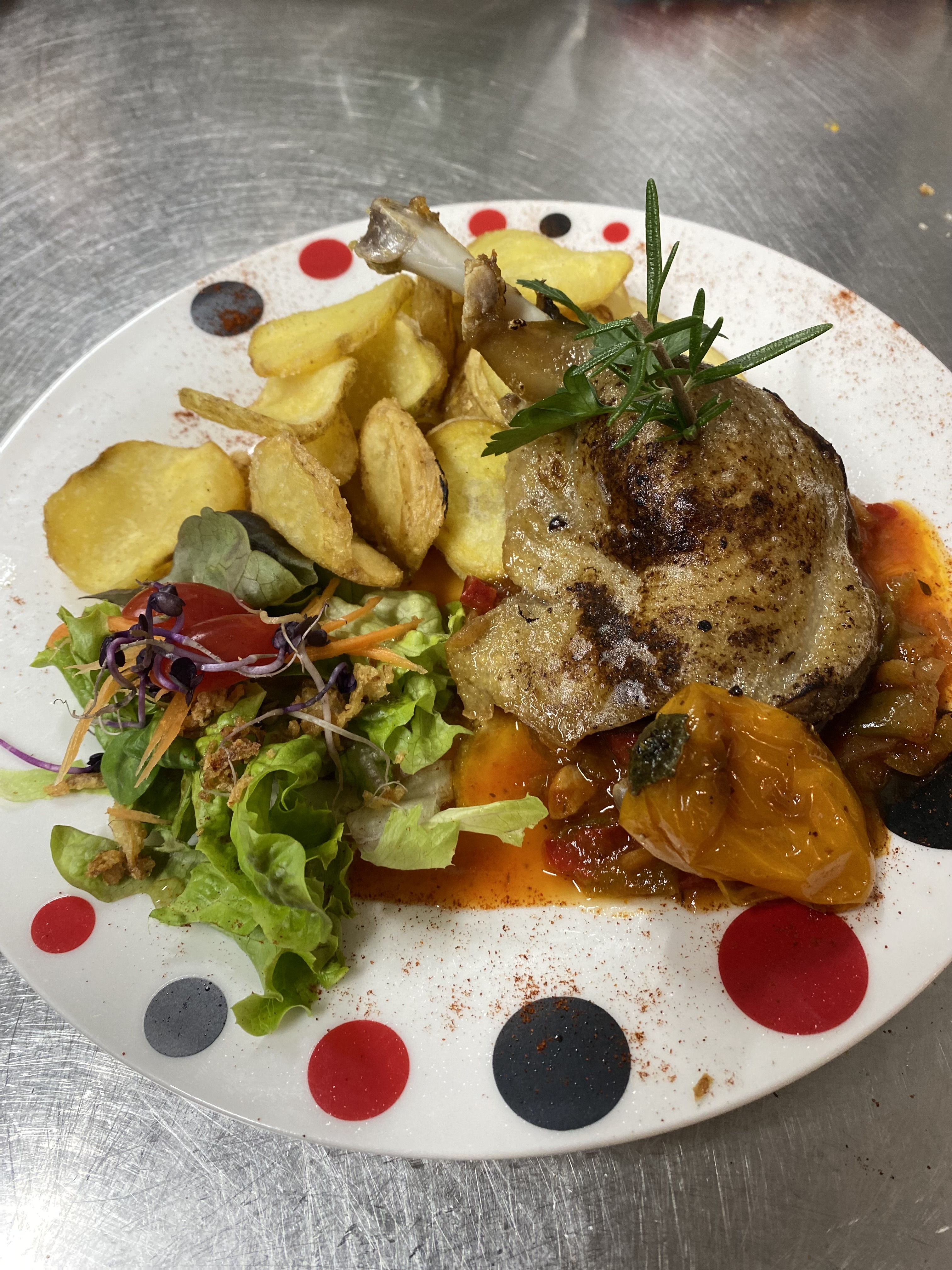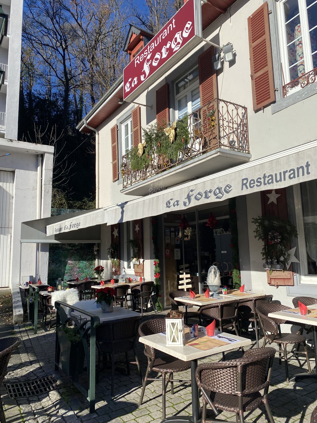Nous vous proposons une belle terrasse ombragée à la vue sur les montagnes ainsi qu’une salle climatisée l’été où chauffée l’hiver par un beau feu de cheminée. Nathalie et Laurent vous reçoit dans une ambiance chaleureuse et conviviale pour partager un déjeuner où dîner entre amis ou en famille